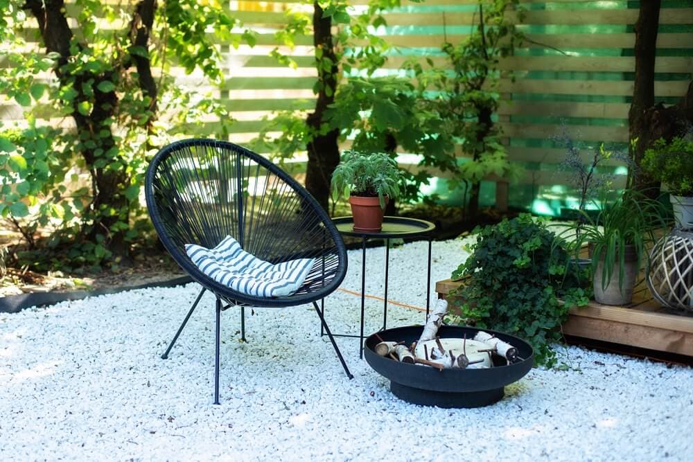 Mindre terrasser kan dra nytte av kompakte bålpanner, mens større områder kan romme større modeller.