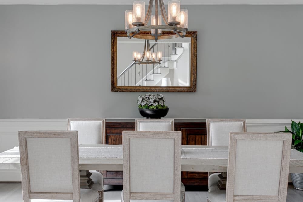 Dersom spisebordet er stort, kan du vurdere å henge flere lamper i en symmetrisk form over bordet. Dette skaper en balansert visuell effekt og gir jevn belysning over hele området.