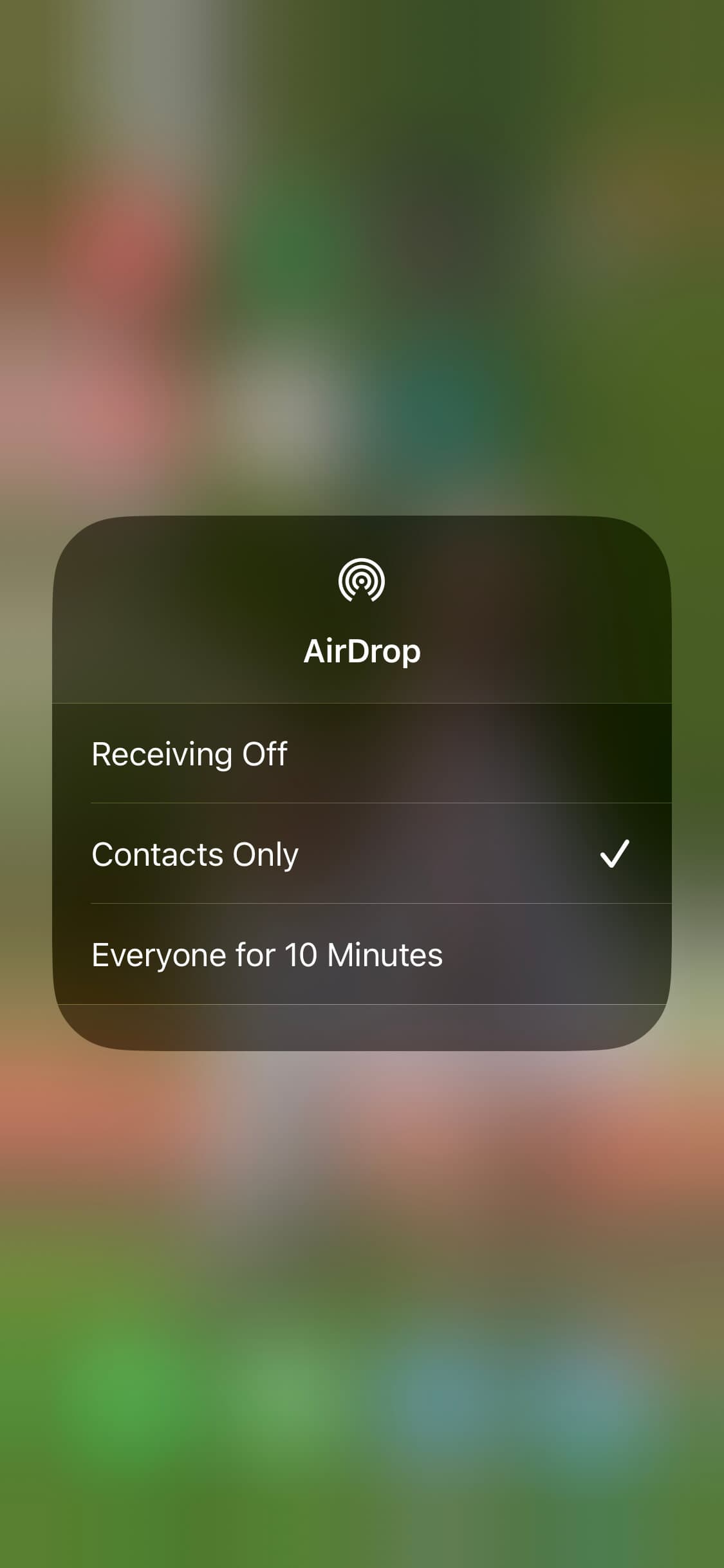 Der kan du også velge hvem som kan se enheten din: "Kun kontakter" eller "Alle", når du holder inne Airdrop-ikonet.