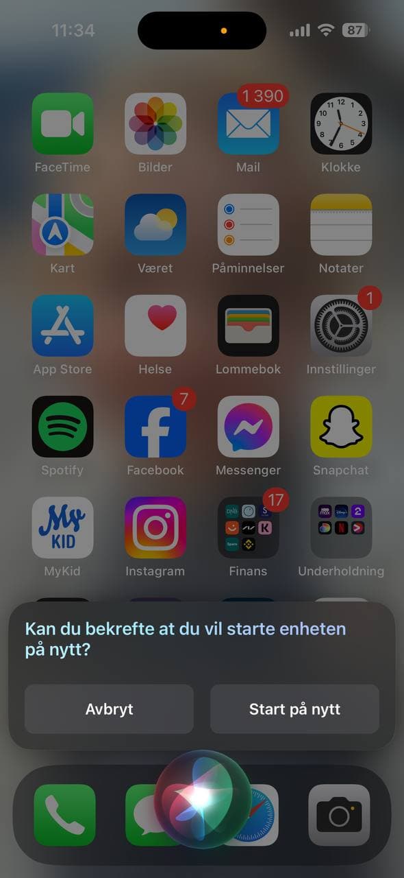 2. Nå kan du si "Restart iPhone"/ "Start iPhone på nytt"